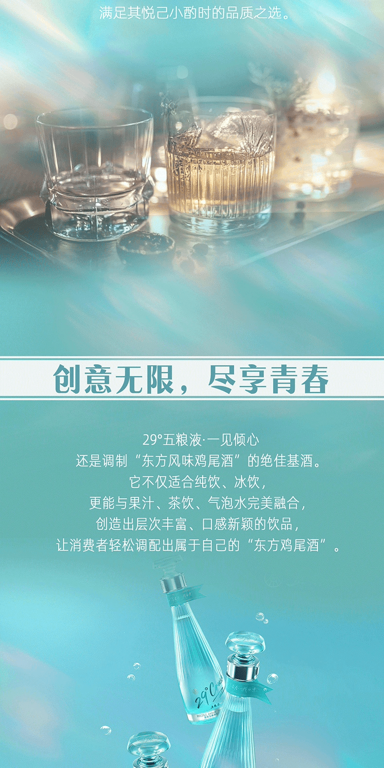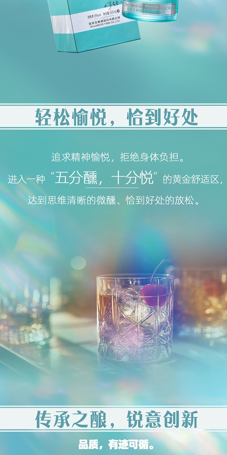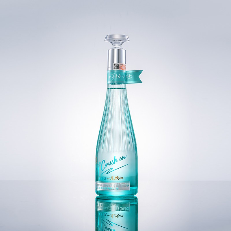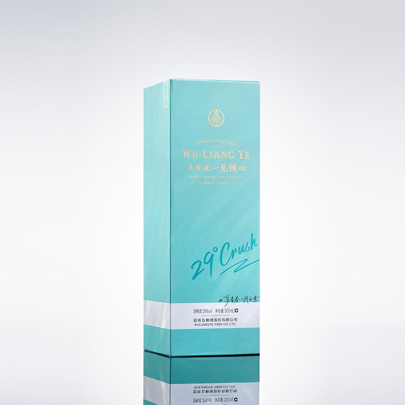 29°五糧液一見傾心以中式傳統色“天青色”為主色調靈感源自《詩經》中“青青子衿、悠悠我心”的意境,承載著中國人骨子裏的浪漫與溫柔。同时,29°五糧液 · 一見傾心是五糧液打造的創新低度白酒,融合傳統工藝與現代口感,以"微醺不醉"的獨特體驗,開啟白酒的輕社交新時代。