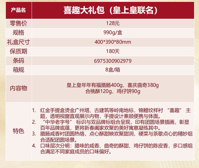 內容物:皇上皇年年有福臘腸400g、喜慶曲奇380g