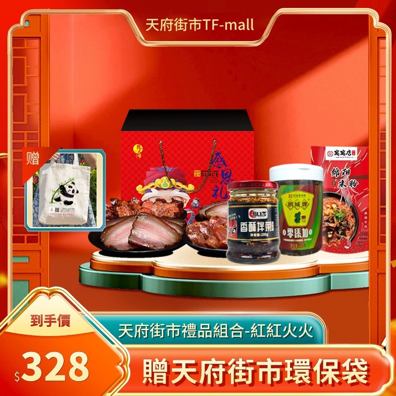 禮品組合包含: ①楊大爺 感恩禮禮盒裝 2000g *1 ②椒上飛 香酥拌菜 200g *1 ③鵑城牌 一級郫縣豆瓣醬 600g *1 ④窩窩店 綿陽米粉 麻辣牛肉味 235g *1